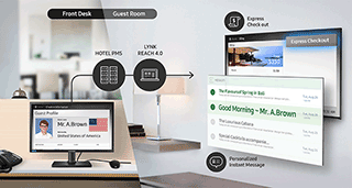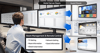 Hotel owners need simplified display management and easy content management across multiple locations to meet the needs of guests who expect a seamless digital and content-rich experience from the moment they walk in the lobby. Samsung Display Solutions embrace hotel digital signage and hospitality display offerings to provide real-time information and a personalized in-room entertainment system.